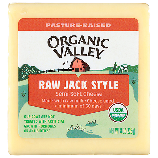 Organic Valley® Organic Jack Style Raw Cheese is a celebration of simple, time-honored craftsmanship. Made with raw milk from pasture-raised cows and aged for a minimum of 60 days, this smooth, creamy jack-style cheese balances mellow flavor with just the right hint of complexity.