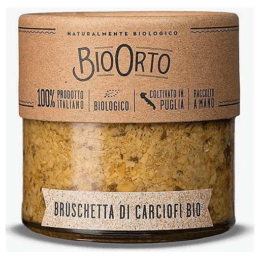 Bio Orto Organic Artichoke Bruschetta delivers classic Mediterranean flavor in a smooth, savory spread. Fresh artichokes are boiled and blended with organic extra virgin olive oil, garlic, parsley, and wine vinegar for a balanced, flavorful condiment.