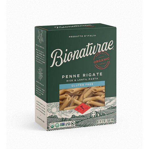 8 grams protein per serving. 100% organic. USDA Organic. Certified Gluten-Free. Produced in a dedicated gluten free facility. Top 8 allergen free. Free of milk, eggs, fish, shellfish, tree nuts, peanuts, gluten, and soy. Certified Organic by QAI. No soy, starch or gums. Non GMO Project verified. nongmoproject.org. New recipe. Same great texture. True Texture: With added protein and the mild, pleasant flavor of yellow lentils, this pasta cooks up firm and tastes great with any sauce. Low-Temperature Drying: Slow, low-temperature drying preserves the light and pleasing flavor of our gluten free pasta. Made by Artisans: Crafted in Tuscany by a family who began producing pasta in 1887 and gluten free in 1970. www.bionaturae.com. 100 plastic-free packaging (See side panel for disposal instructions. Before recycling the paper box, detach the window which is 100% home compostable and biodegradable). Product of Italy.